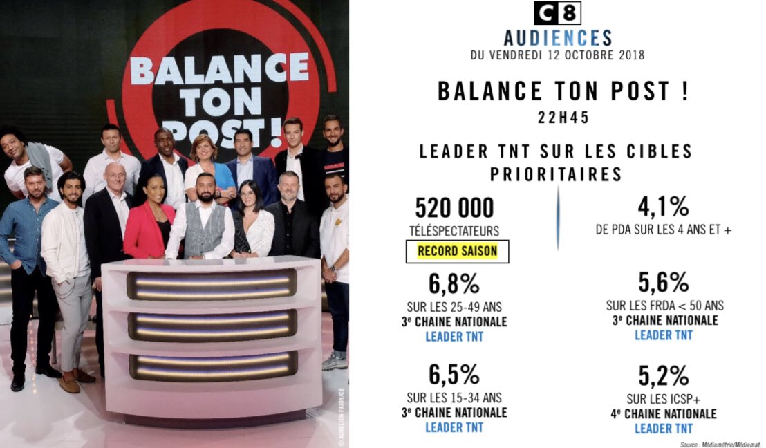 RT @C8TV: #Audiences @C8TV Record pour #BalanceTonPost #BT 13 octobre 201813 octobre 2018 @christine_kelly Actualités christine_kelly Record pour https://t.co/eI66eLZX7L